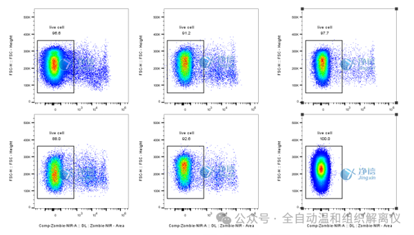 實驗結果顯示,制備的脂肪單細胞懸液活率接近100%(下方流式結果圖),優于常規制備方法的活率水平。高活率細胞不僅能確保下游實驗的準確性,更能減少樣品浪費,降低科研成本。