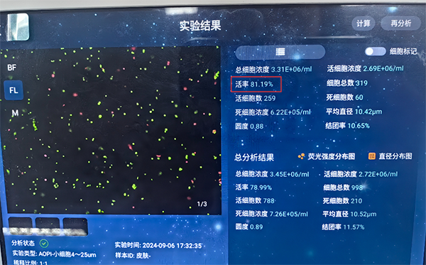 但換成單細胞懸液制備儀后,這些 “坑” 全被填平了 —— 我們用 150mg 小鼠皮膚做實驗,活率可以到 81%,效果遠超手動法!